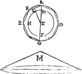 Sphaera aequalis est cono, cuius basis sphaericae superficiei, celsitudo vero sphaerae semidiametro aequalis est. Sit circulus ABGD, cuius centrum E, diameter AG, et circumacto semel semicirculo ABG super immotam diametron AG describatur sphaera ABG, sitque conus M, cuius basis sphaerae ABG superficiei, celsitudo autem semidiametro AE sit aequalis. Aio quod aequalis est conus M sphaerae ABG: nam si conus M non sit aequalis sphaerae ABG erit aequalis sphaerae alteri alicui maiori, vel minori, quam est ipsa sphaera ABG. Sit ergo primum, si possibile est, conus M aequalis sphaerae ZHT minori quam est sphaera ABG, et cum ea concentricae, cuius diameter ZT, et quam circa diametrum ZT revolutus describit semicirculus ZHT, et per 13.12. inscribatur circulo ABG polygonium aequalium laterum minime tangentium circulum ZT, quod sit ABGD, cuius laterum unum sit AK ad quod a centro perpendicularis exeat EL, et polygonii dimidio semel circa diametrum AG circumacto describatur solidum co[S:71]nicarum superficierum minime iam tangentium sphaeram ZHT, eritque per praecedentem, solidum ABG aequum cono, cuius basis aequalis est superficiei solidi ABG, celsitudo vero perpendiculari EL, huiusmodi itaque cono maior est conus M, quandoquidem, et basi, et celsitudine superior est, quoniam scilicet sphaerae ABG superficies maior est solidi ABG inclusi superficie, et linea AE maior, quam perpendicularis EL: et ideo sphaera ZHT ipsi cono M aequalis maior erit solido ABG: pars toto, quod est impossibile. Vel sic, quoniam conus M maior fuit cono dicto aequali ipsi solido ABG, et ideo maior ipso solido ABG; et solidum ABG maius sphaera ZHT: propterea conus M maior erit sphaera ZHT, non est ergo ei aequalis sicut supponebatur.