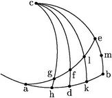 41 Item datis angulis a et agh acutis dabuntur et arcus singuli. Nam quantitas anguli a est arcus eb et quantitas anguli agh est arcus lc datur igitur arcus lc et arcus ce complementum ipsius eb. Sed sicut sinus arcus lc ad sinum arcus ce, sic sinus totus ad sinum anguli cle. Igitur datur sinus anguli cle et ipse angulus cle ipsique oppositus angulus alk. Sed quantitas anguli alk est arcus cg. 42 Itaque datur arcus cg et eius complementum arcus gh. Et inde reliqui, ut ante. Vel sic. Quoniam sicut sinus arcus eb ad sinum totum sic sinus arcus lk ad sinum arcus la. Ideo dabitur sinus arcus la et ipse arcus la et eius complementum le arcus, et ipsi le aequalis arcus ah. Et inde reliqui, ut ante.