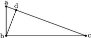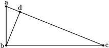 49 Ut autem intelligamus artificium tam foecundae, quam beneficae, atque etiam sinus recti tabellarum, sit triangulum abc cuius angulus abc rectus: et bd perpendicularis, ad latus ac in quo linea ab est sinus totus: angulus a quantitas arcus cum qua intratur, in quamlibet dictarum trium tabellarum. 50 Et si ponatur ab gnomon, erit bc umbra versa, ad altitudinem anguli a. Et linea ac radius coniungens extrema gnomonis et umbrae. Igitur intranti in tabellam sinus cum angulo a offertur sinus rectus, qui est linea bd nam da est sinus secundus ipsius anguli. Intranti autem in tabellam fecundam cum angulo a offertur umbra versa, qua est linea bc. Intranti demum tabulam beneficam cum angulo ipso a offertur linea ac quam radium appello. 51 Hinc patet structura et collatio harum trium tabellarum. Namque ex notitia duarum linearum, scilicet ab quae est sinus totus, et ex bd notescunt coeterae. In tabella itaque sinus recti, quando angulus a nihil est: sinus quoque bd nullus est: quando autem angulus a continet 30 gradus; sinus bd est dimidium ipsius ab sinus totius, quare scilicet est dimidium lateris hexagoni: quando vero angulus a habet 90 gradus, tunc bd est ipsa ab sinus totus. 52 In tabella vero foecunda, quando angulus a nihil est, umbra versa bc nulla est. Quando vero angulus a habet 45 gradus: umbra bc aequalis est ipsi ab gnomoni. Quando vero angulus a habet 90 gradus; umbra bc infinita est.