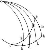 Item datis arcu gh et angulo agh, dantur reliqua. 44 Nam sic datur arcus cg et complementum ipsius gh, datur et arcus cl quantitas ipsius anguli agh. Sed sicut sinus totus ad sinum arcus cg, sic sinus arcus cl ad sinum arcus ce, dabitur ergo sinus arcus ce et ipse arcus ce eiusque complementum eb, qui est quantitas anguli a. Igitur per 5um vel 6um datum dabuntur coetera.